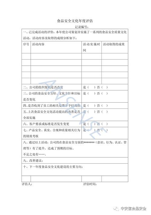 以下是食品安全文化年度评估格式的示例,以供参考。